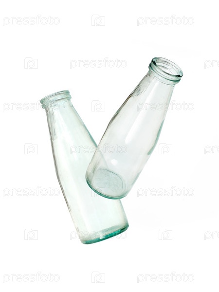 Винтажное стекло с молочной бутылкой, изолированной на белом фоне