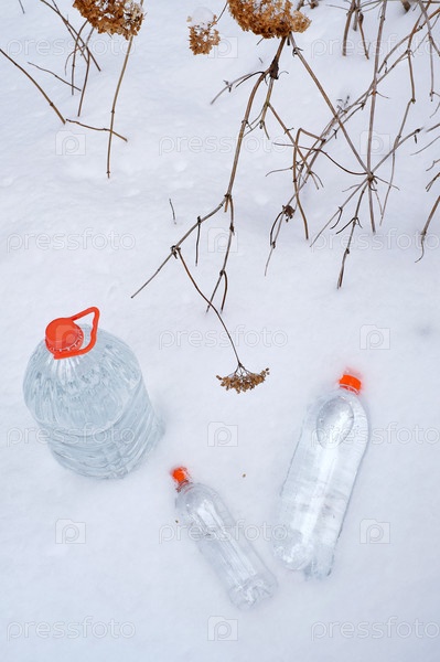 Бутылки с питьевой водой в снегу
