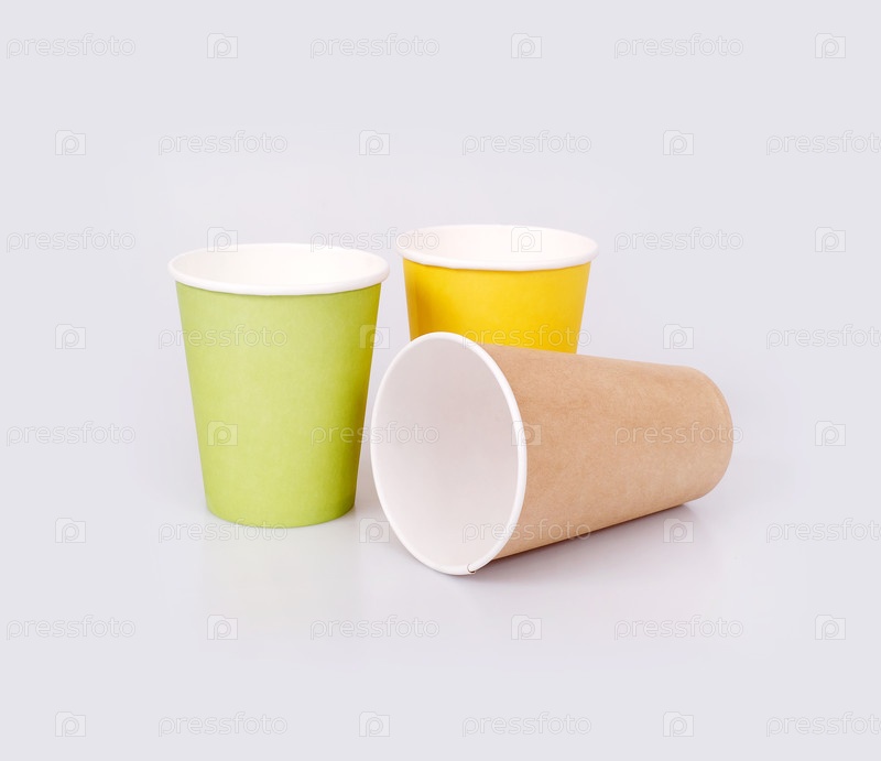 Крафт-бумажные чашки изолированы на сером фоне