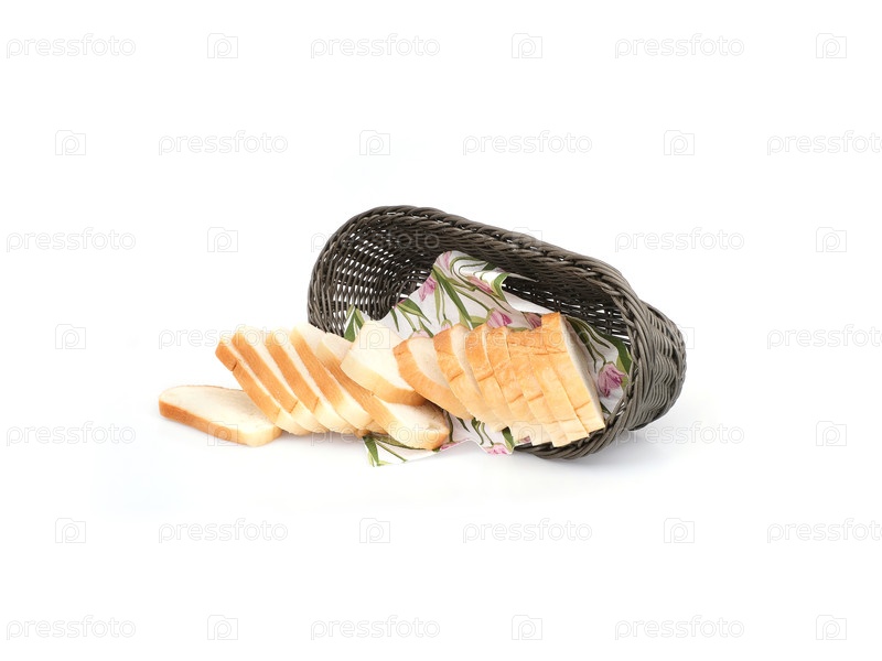 Ручно-тканая корзина белого хлеба, изолированного на белом фоне