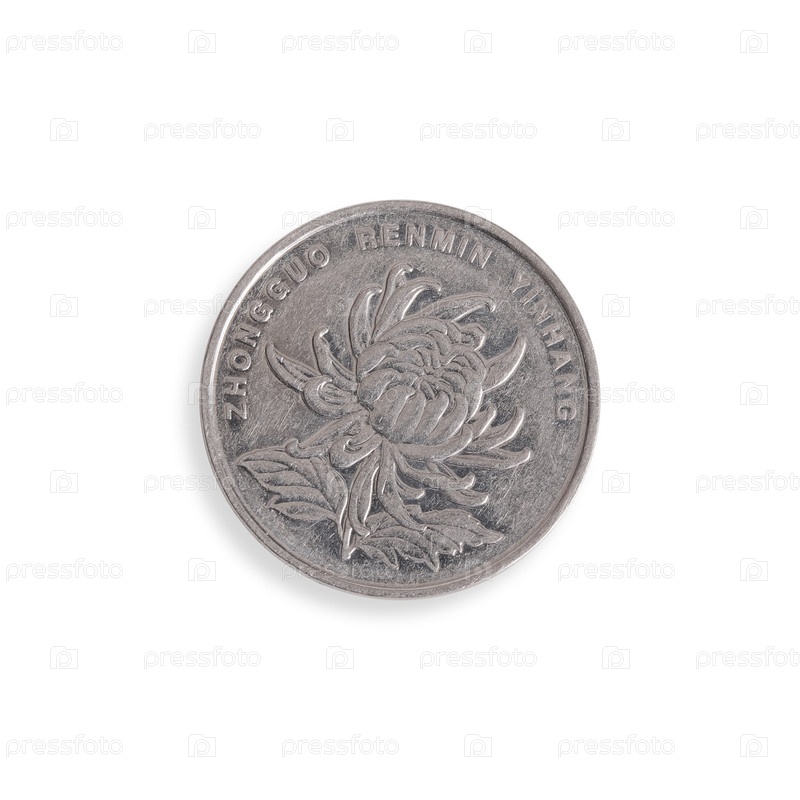 Монета китайского 1 Jiao выделена на белом фоне. Китайская надпись означает People's Bank of China