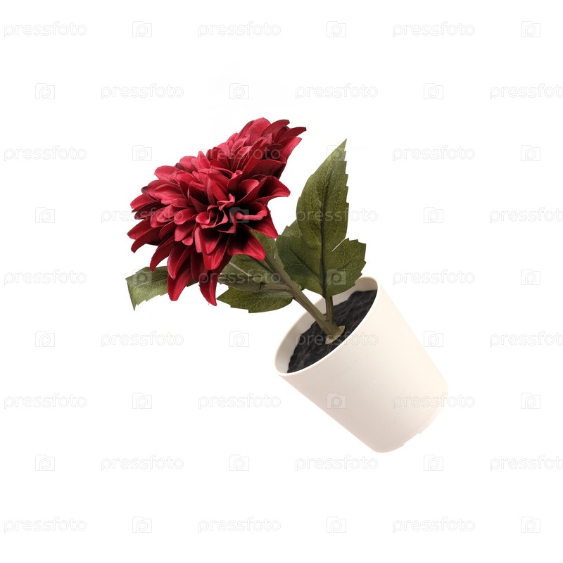 Розовые искусственные цветы в белых горшках, изолированных на белом фоне