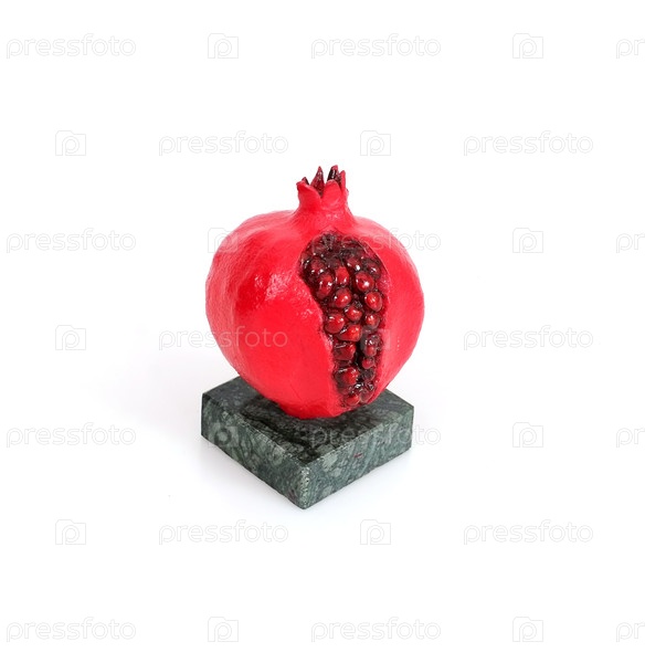 Зрелый гранат с зернами, выделенными на белом фоне (сувенирная статуя)