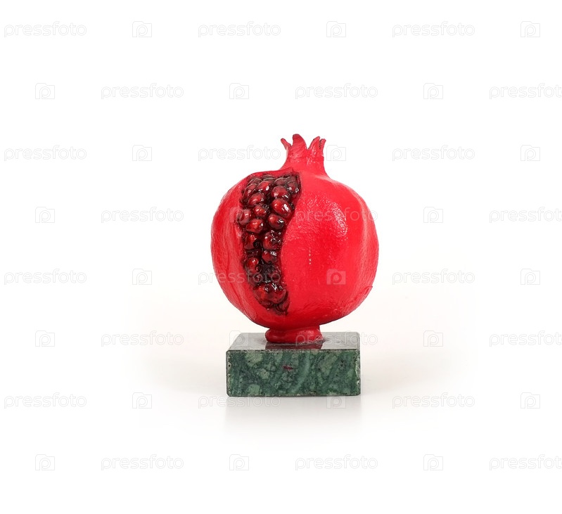 Зрелый гранат с зернами, выделенными на белом фоне (сувенирная статуя)