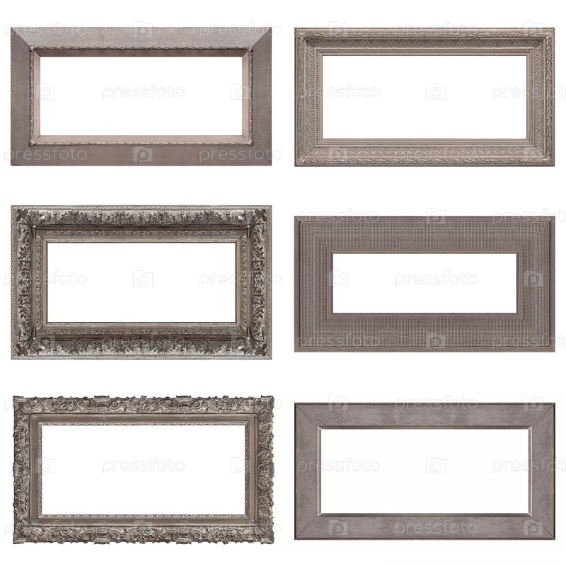 Набор серебряных рамок для картин, зеркал или фотографий, изолированных на белом фоне