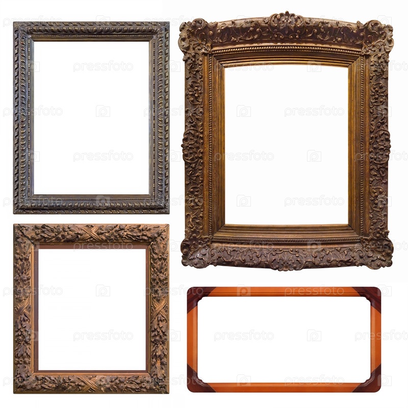 Набор деревянных рамок для картин, зеркал или фотографий, изолированных на белом фоне