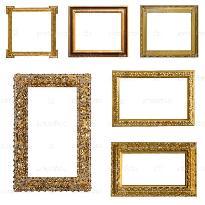 Золотые рамы для картин, зеркал или фотографий, изолированных на белом фоне (множество изображений)