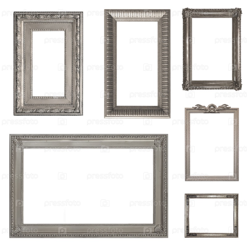 Серебряные рамы для картин, зеркал или фотографий, изолированных на белом фоне (набор изображений)