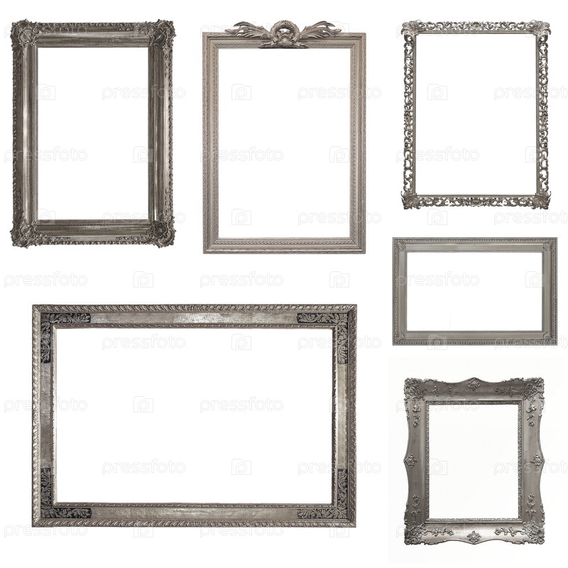 Серебряные рамы для картин, зеркал или фотографий, изолированных на белом фоне (набор изображений)