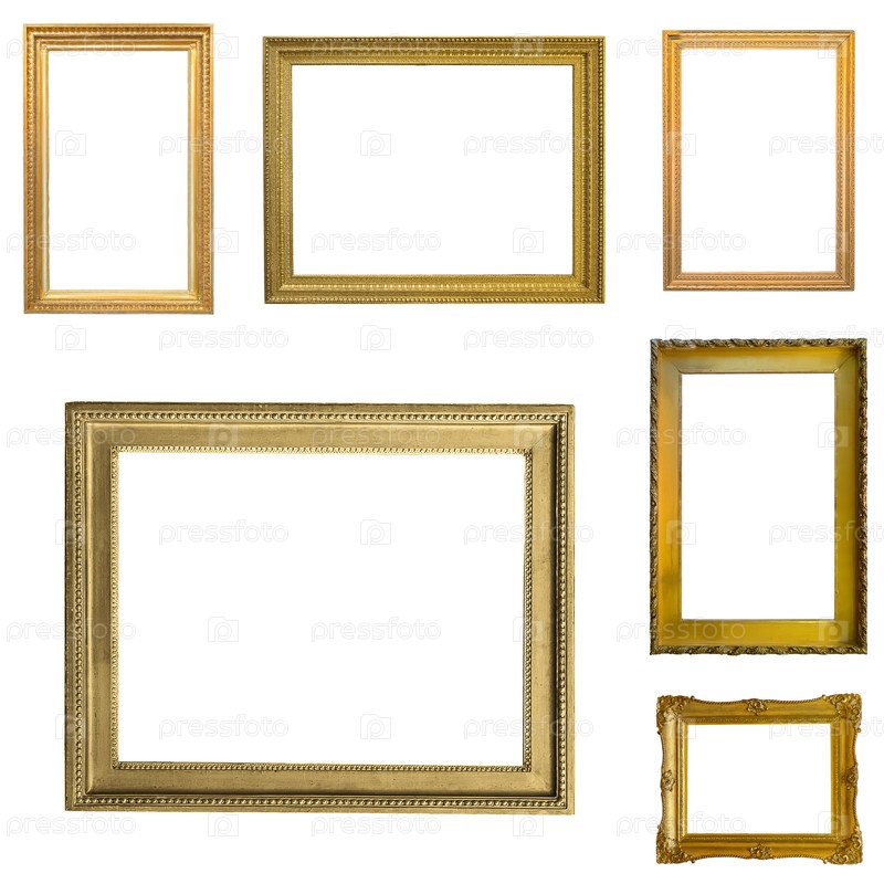 Золотые рамы для картин, зеркал или фотографий, изолированных на белом фоне (множество изображений)
