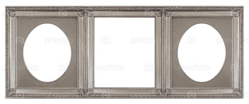 Тройная серебряная рама (триптих) для картин, зеркал или фотографий, изолированных на белом фоне