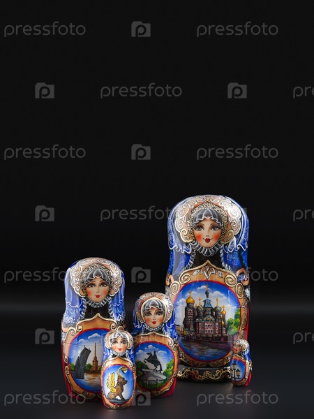 Российский национальный сувенир (Матриошка) изолированный на черном фоне