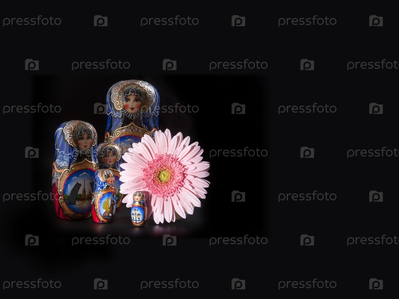 Российский национальный сувенир (Матриошка) изолированный на черном фоне