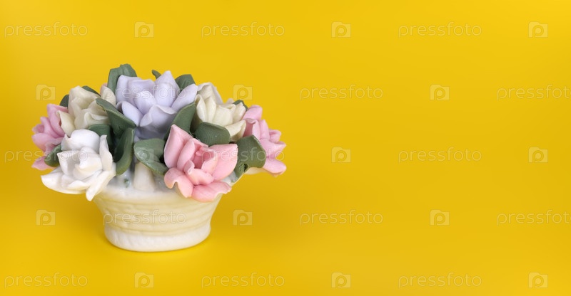 Порцелановая корзина с цветами, изолированная на фоне Yell