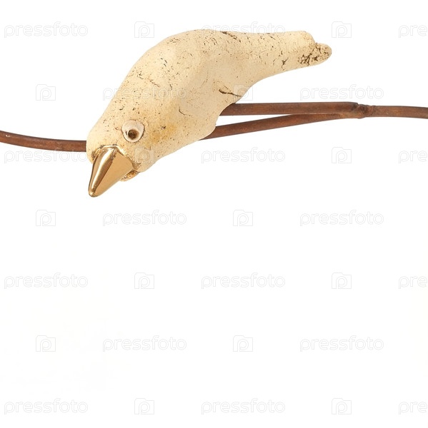 Птица на ветвях (изолирована на белом фоне), макеты открыток