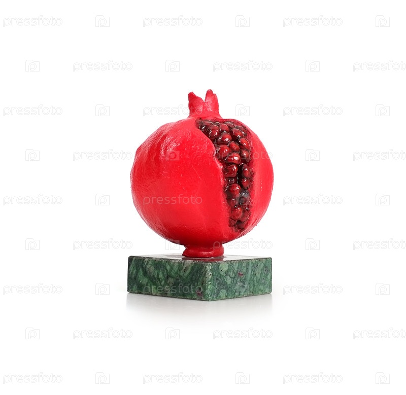 Зрелый гранат с зернами, выделенными на белом фоне (сувенирная статуя)