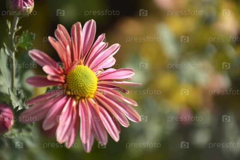 Хризантема. расфокусированный осенний цветок в лучах солнца на закате. садовой астер, красивые цветы с нежными лепестками. красота природы осенью. шикарный осенний фон