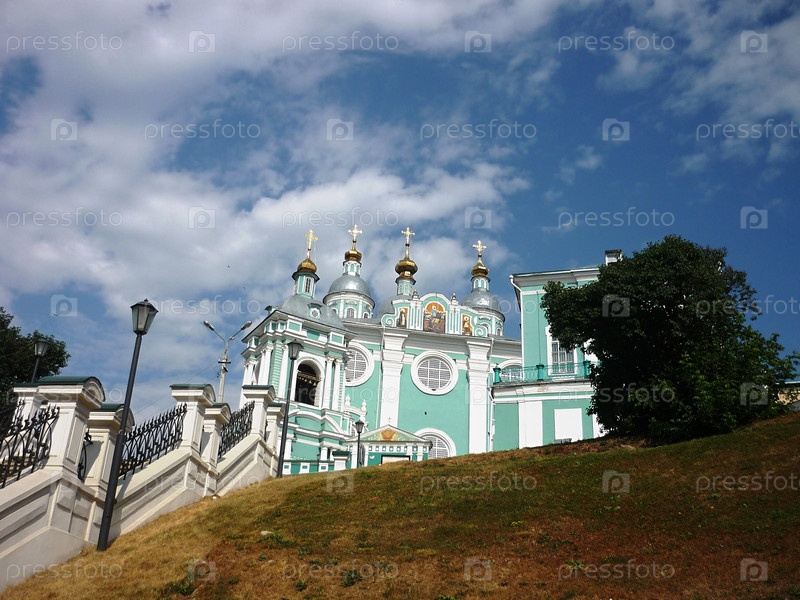 Смоленск.Россия Собор Успенской Богородицы против голубого неба 08/11/2014