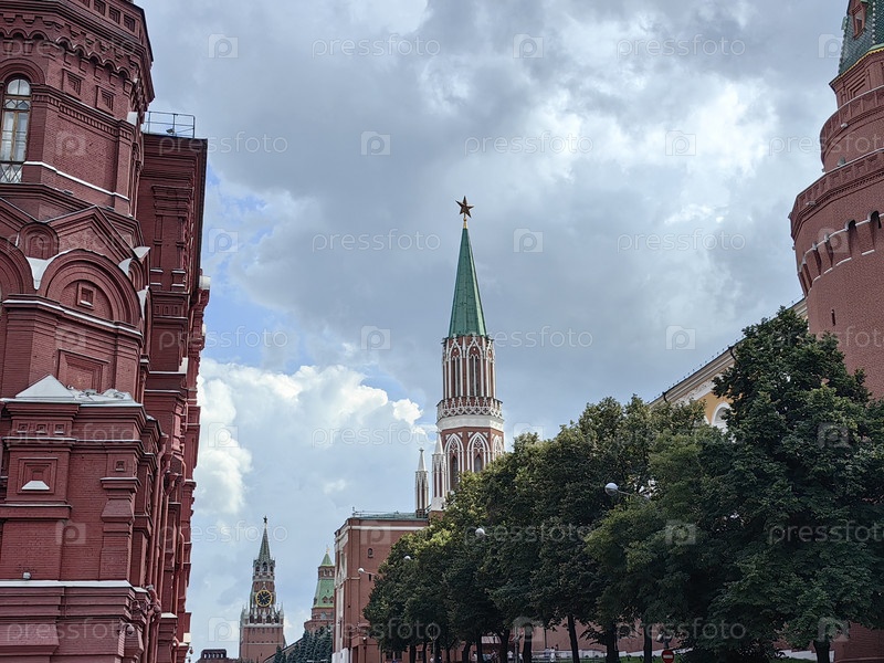 Городской пейзаж, центр Москвы, вид на Московский Кремль и стену на Красной площади
