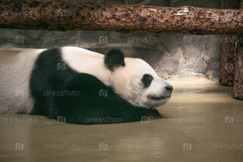 Гигантская панда спит в зоопарке