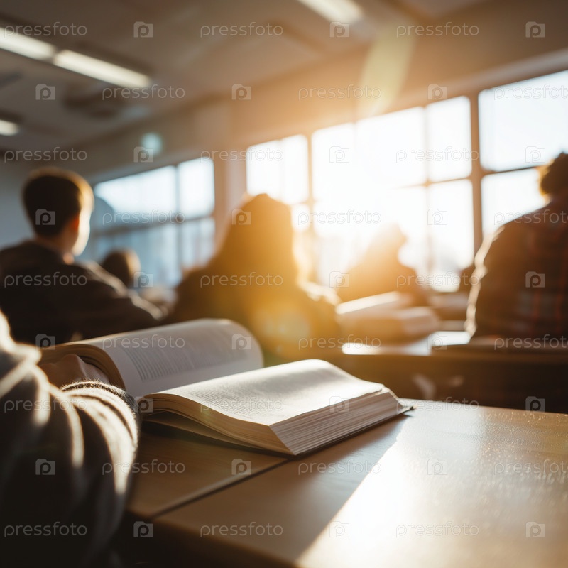 Открытая книга на столе в классе солнца
