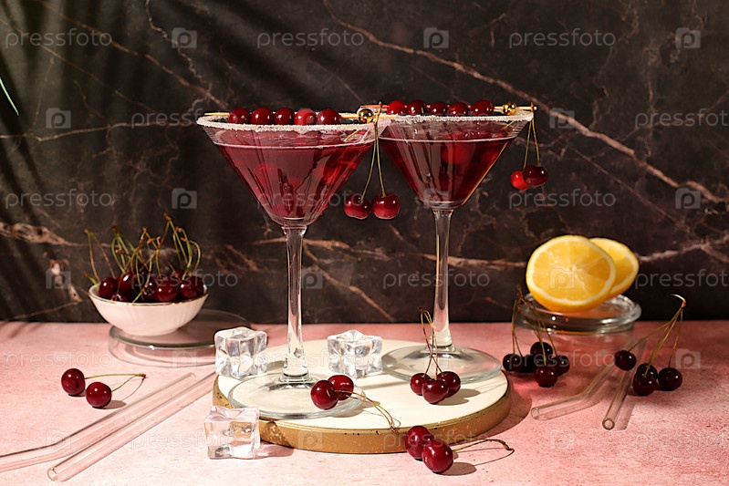 Маргарита с вишней, мятой, лед с текилой, водка на элегантном фоне, натюрморт со напитками минималистическая концепция для бара, безалкогольный и алкогольный напиток для похудения, рекламный баннер для кафе