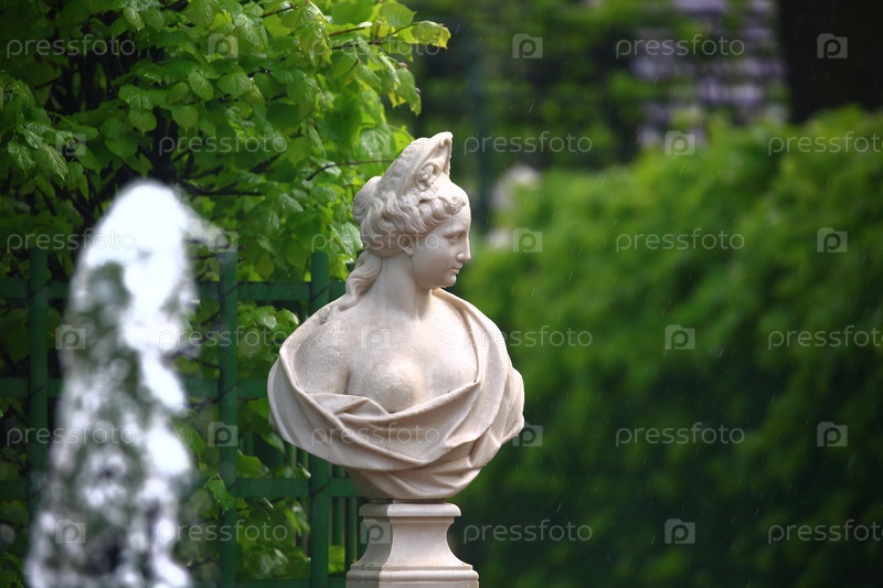 Летний сад.Статуя и зеленые жиры под дождем.Клооп