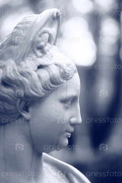 Женская мраморная статуя вблизи дождя Летний сад, Санкт-Петербург. монохром