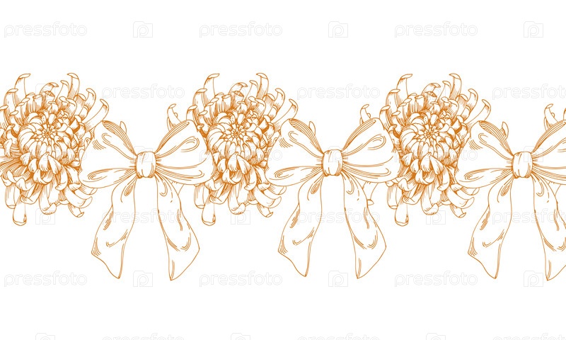 Бесшовная граница букета хризантемов с луком. для дизайна упаковки, карт, обложек, принтов, этикеток на продуктах и тканей