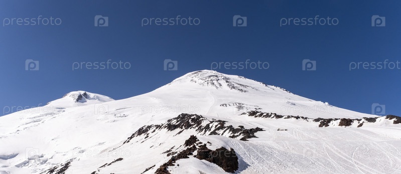 Два вершины Эльбруса, западный и восточный пики в солнечную погоду