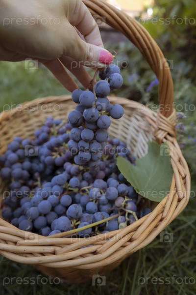 Виноград выходит из корзины
