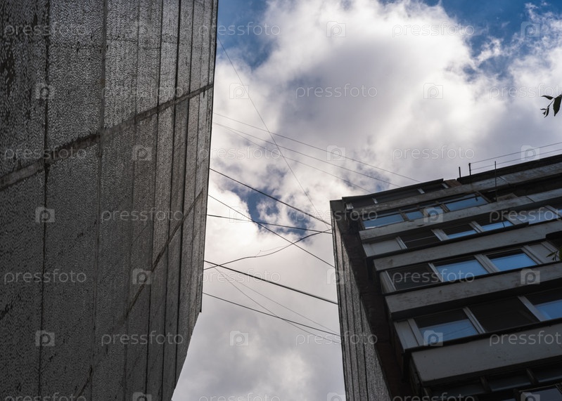 Уголки панельных зданий под облачным небом
