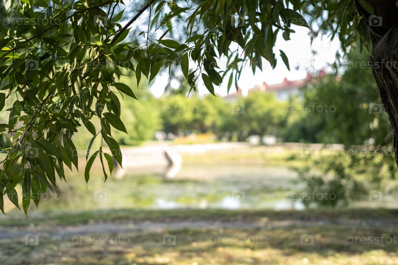 Верба и вид на небольшой пруд