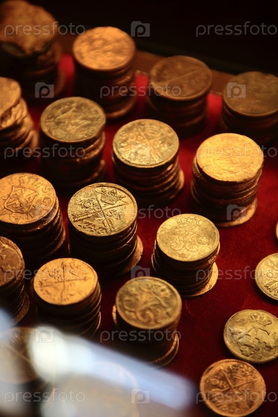 Столбы старых шведских и российских монет, ближайший снимок