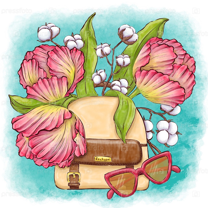 Иллюстрация моды с цветами и женственными атрибутами.Идеально подходит для упаковки и брендинга