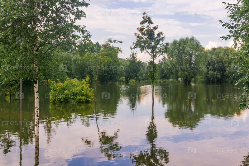 Природный парк затоплен после сильных дождей, деревья стоят в воде