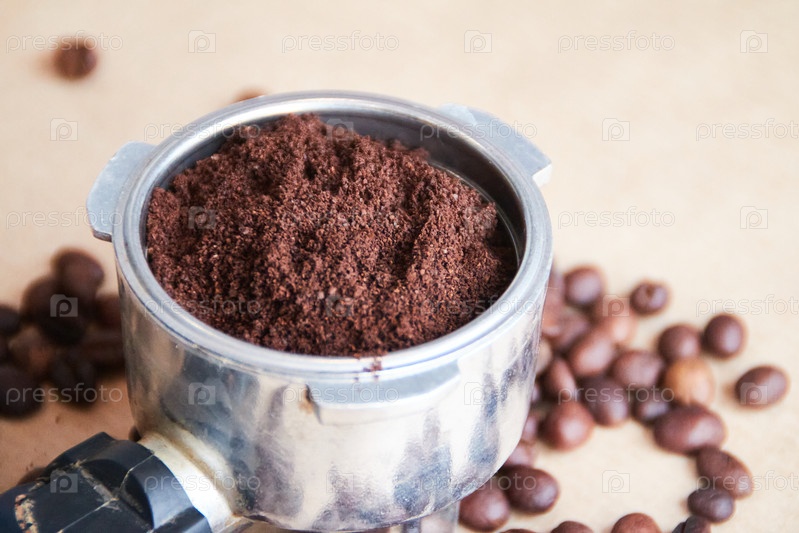 Кофейные бобы и рог кофемашины