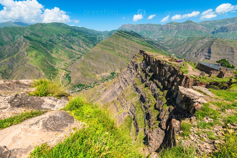 Живописный горный пейзаж с крутой скалой.Северный Кавказ