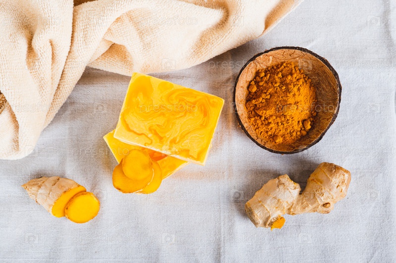 Естественное домашнее омолаживающее мыло с куркумой на верхнем видении