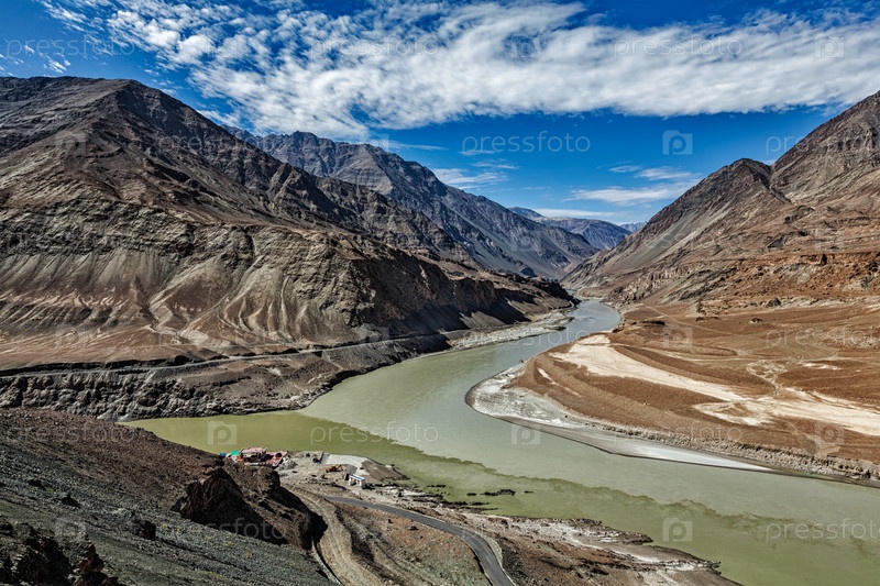 Slilyer Rek Ind и Zanscar в Гималае. долина Инда, Ладакх, Индия
