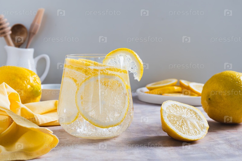 Освежающая лимонная вода в стакане на столе