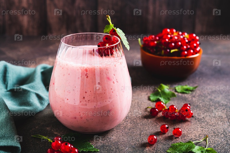 Антиоксидантный коктейль с красной смородиной в стакане на столе