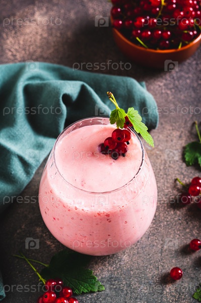 Смути соевого молока из красной смородины в стекле на столе вертикальный вид