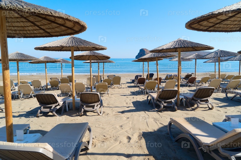 Синий стул на пляже Агия Марина, Крит, Греция