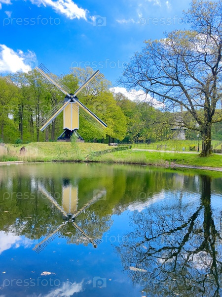 Традиционная сельская земля в Арнемме с каналами, Нидерланды