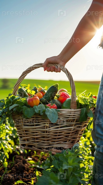 Сбор свежих и питательных овощей обильная корзина, собранная с плодородных полей природы
