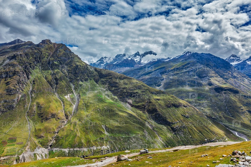 Грузовик на дороге в Гималаях. спуск от перевала Рохтанг-Ла до долины Лахаул. Химачал-Прадеш, Индия