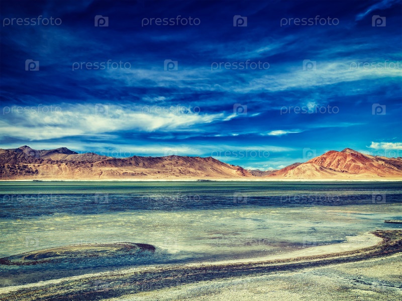 Винтажный ретро-эффект отфильтровал изображение хипстерского стиля Tso Kar - колеблющегося соленого озера mutane в Гималаях