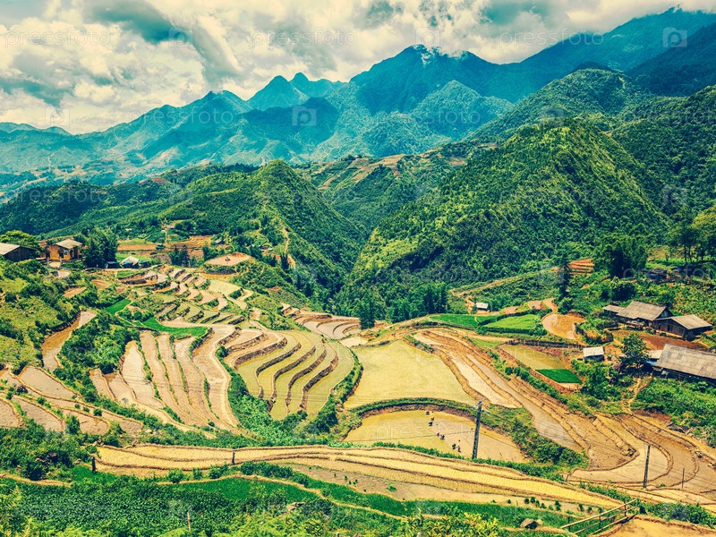 Винтажный ретро-эффект отфильтровал хипстерский стиль изображения террас рисовых полей (рисовые поля).Рядом с кошкой, деревня кошек является популярным туристическим направлением для походов