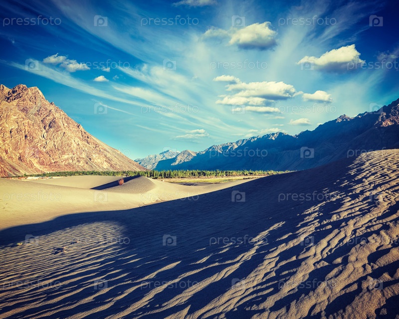 Винтажный ретро-эффект отфильтровал изображение песчаных дюн в долине Нубра в Гималаях